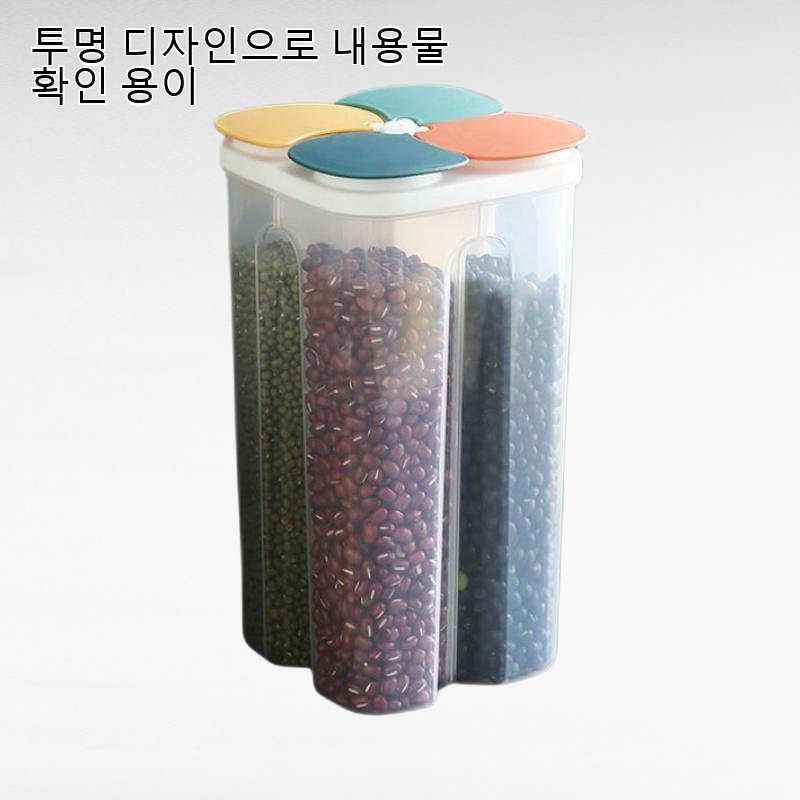 밀폐력 좋은 주방 수납함, 곡물 신선도 유지, 투명 디자인으로 내용물 확인 용이, 공간 절약, 다양한 곡물 및 식재료 보관 가능